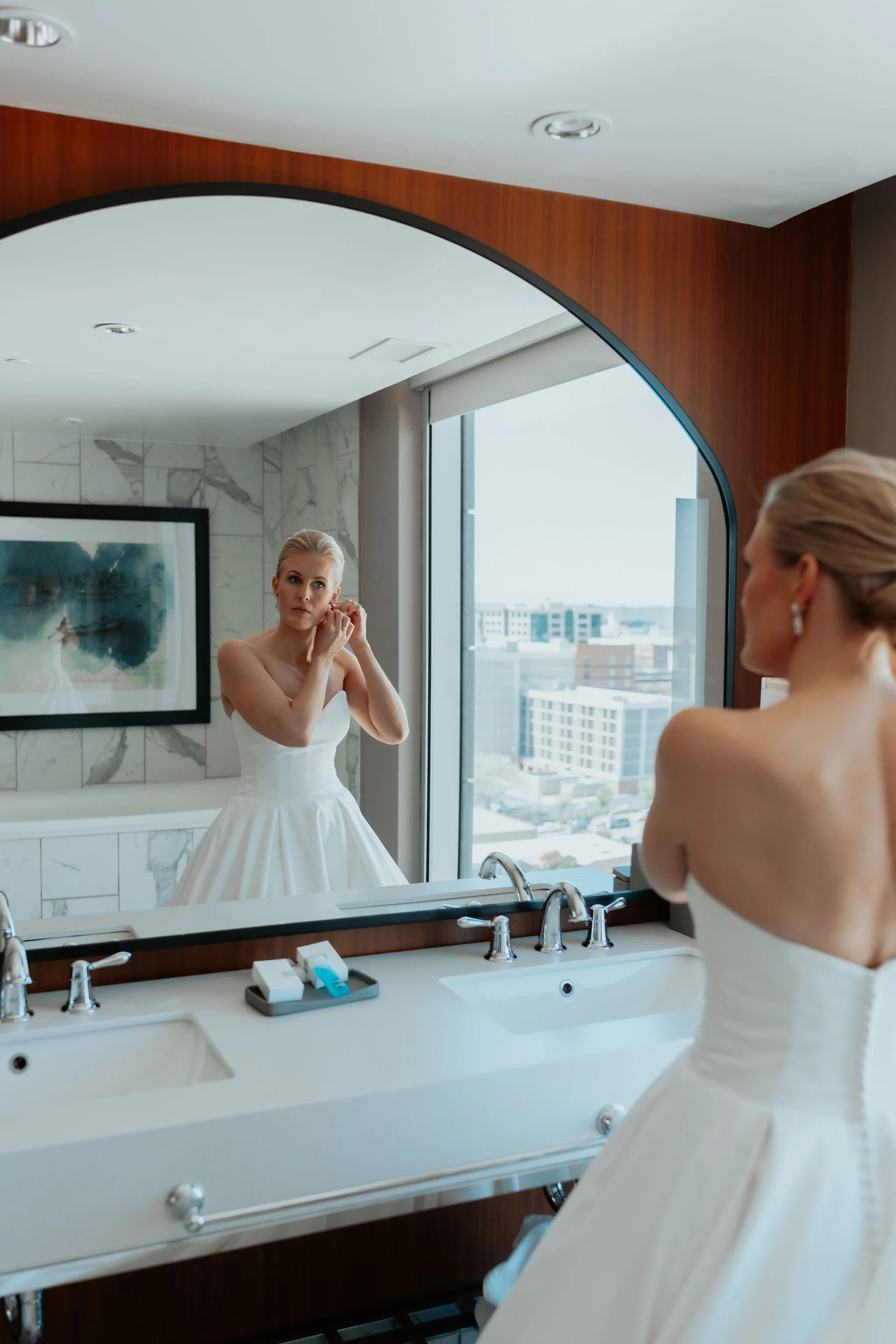 CC Bride Emily getting ready for her wedding. Photography by Woods Media Company.
